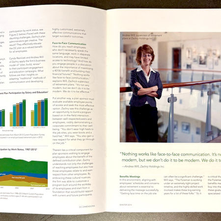 This initiative required an entirely new tone and approach. Instead of speaking to financial advisors through data-heavy messaging, we targeted HR professionals and organizational leaders with storytelling that highlighted real workplace impact. I helped develop sales collateral, digital assets, and a conceptual quarterly magazine that reinforced Dimensional’s thought leadership and provided tools for the new DC sales team.